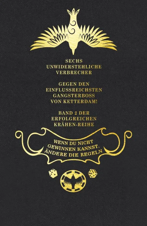 Kaz Brekker und seinen Krähen ist ein derart spektakulärer Coup gelungen, dass sie selbst nicht auf ihr Überleben gewettet hätten. Statt der versprochenen fürstlichen Belohnung erwartet sie jedoch bitterer Verrat, als sie nach Ketterdam zurückkehren. Haarscharf kommen die Krähen mit dem Leben davon, Kaz‘ Geliebte Inej gerät in Gefangenschaft. Doch Kaz trägt seinen Spitznamen »Dirtyhands« nicht ohne Grund von jetzt an ist ihm kein Deal zu schmutzig und kein Risiko zu groß, um Inej zu befreien und seinen betrügerischen Erzfeind Pekka Rollins zu vernichten.