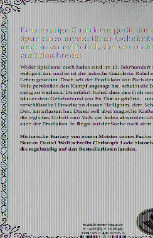 Da erfährt Rahel von der geheimnisvollen Wahrsagerin Madora, dass ihre früh verstorbene Mutter eine mächtige Seherin war, die dem Geheimbund von En Dor angehörte. Dessen Heiligtum, der Schrein von En Dor, soll über magische Kräfte verfügen. Madora will den Schrein aufspüren, um drohendes Unheil vom Volk der Juden abzuwenden, doch dazu benötigt sie Rahels Hilfe: Die Gauklerin hat von ihrer Mutter ein altes Lied gelernt, das verschlüsselte Hinweise auf das Versteck des Schreins enthält.