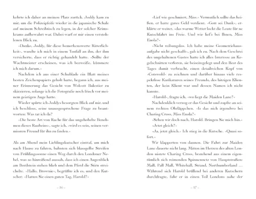 Das lässt sich Enola nicht gefallen! Schon gar nicht von ihrem Bruder! Fest entschlossen, die Wahrheit hinter dem Verschwinden des jungen Amerikaners zu erfahren, fängt sie an auf eigene Faust zu ermitteln. Sie begibt sich in die Verlagswelt, die gefährlicher ist als erwartet, und stößt dabei auf eine mysteriöse Bruderschaft. Kann sie den Verschwundenen noch rechtzeitig aufspüren und unversehrt zu seinen Freunden und seiner Familie zurückbringen . . . ?
