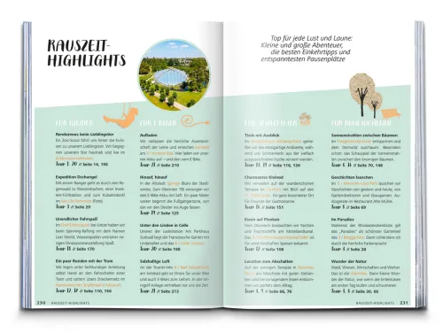 Bei der Tourenauswahl helfen Highlight-Listen für Kinder, E-Biker, Schlemmer und Ruhesuchende. Dank Eventkalender planst du deine Route immer zur besten Zeit und mit Radcheck und Packliste bist du bestens gerüstet fürs Heimat- oder Urlaubsabenteuer. Jede Tour wird ergänzt um Einkehrtipps, Anreiseinfos, Höhenprofil und Tourenkarte.