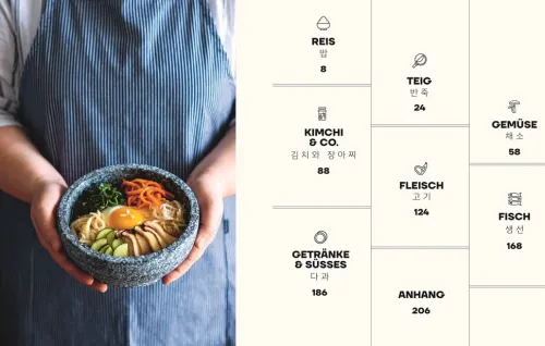 Ob Bratreis mit Kimchi, Tteok-Spieße, Koreanisches Barbecue, Fischküchlein oder Dalgona-Kekse – Fans von koreanischem Essen kommen hier voll auf ihre Kosten. Das Kochbuch für alle Foodies, die ihre Lieblingsgerichte aus dem koreanischen Restaurant in Handumdrehen nachkochen möchten.
