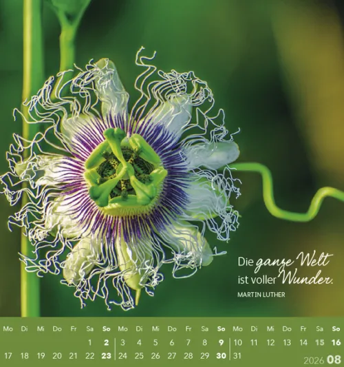 Jedes Kalenderblatt ist so gestaltet, dass es einfach abzutrennen ist. Somit können Sie jeden Monat eine Postkarte mit einem schönen Spruch versenden oder verschenken.
