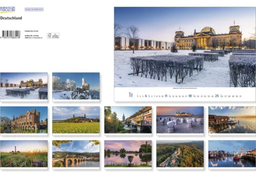 Idyllische Orte, historische Städte, berühmte Schlösser, malerische Seen, bezaubernde Meeres- und Gebirgslandschaften – Deutschland ist ein traumhaftes Urlaubsland! Zwölf Natur- und Kulturschätze Deutschlands präsentiert dieser Kalender, der uns die Schönheit des Landes in Fotos mit magischem Licht auf besondere Weise entdecken lässt.