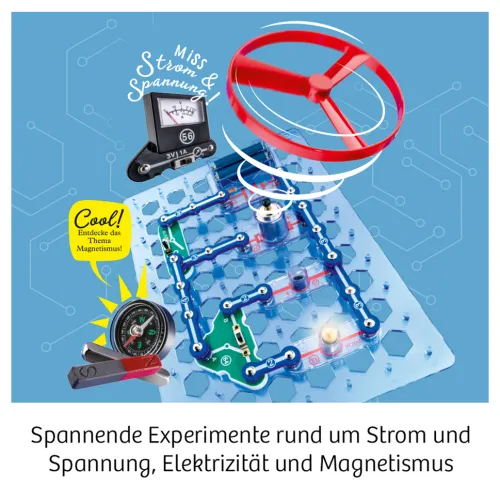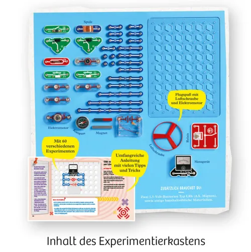 – Anhand von einfachen und weiterführenden Versuchen mit Reihen- und Parallelschaltungen, Messgerät, Motor, Magnet und Spule lernen Kinder Schritt für Schritt die Grundbegriffe der Elektrizität