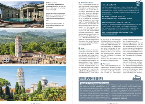 Dabei werden auf jeder Tour attraktive Stell- und Campingplätze vorgeschlagen und Ausflugsziele rechts und links der Strecke besucht. Detaillierte Routenkarten, GPS-Tracks und ein informativer Reiseatlas erleichtern die Reiseplanung.