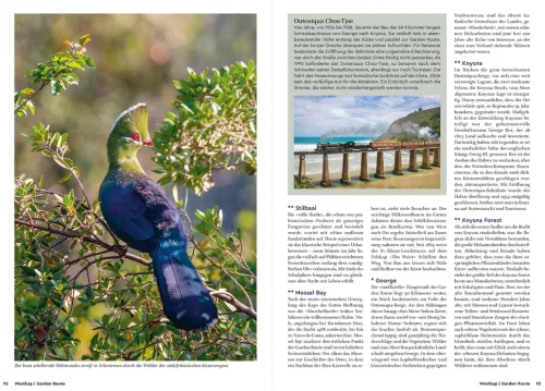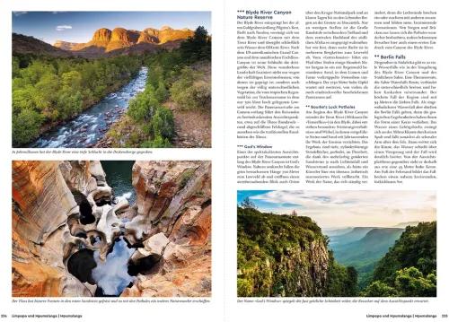 Themenseiten erzählen von berühmten Persönlichkeiten Südafrikas wie Nelson Mandela und Nadine Gordimer, bieten Wissenswertes zu den Big Five und weiteren heimischen Tieren, und berichten von den Traditionen verschiedener Ethnien. Mit fünf Routenvorschlägen – darunter zwei Trekkingtouren -, Stadtplänen und einem detaillierten Reiseatlas lässt sich die Reisevorbereitung erleichtern.