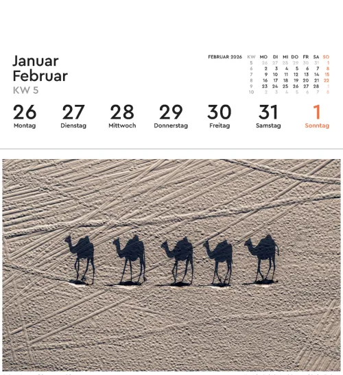 Woche um Woche begleitet dieser KUNTH Postkartenkalender „Perspektivwechsel“ 2026 mit atemberaubenden Bildern durch das Jahr – auf dem Schreibtisch oder als Hingucker an der Wand. Die Postkarten zum Herauslösen können dann als Gruß versendet werden.