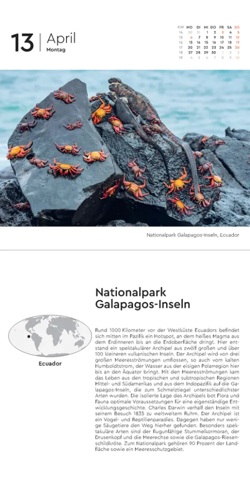 Unsere Erde leuchtet in strahlenden Farben, präsentiert sich in grandiosen Formen und übersteigt mit ihrem Einfallsreichtum noch die kühnste Fantasie. Der Kalender von KUNTH bietet eine begeisternde und faszinierende Reise zu den schönsten Paradiesen der Erde.