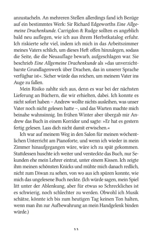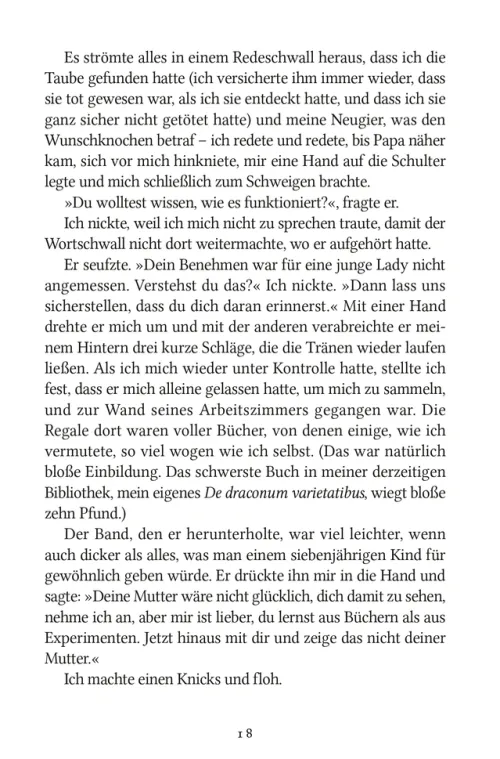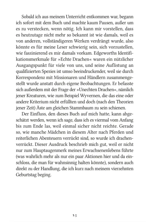 Lady Trent ist die herausragendste und erfolgreichste Drachenforscherin der Welt. Einst war sie ein junges Mädchen, vernarrt in Bücher und lernbegierig, das den erstickenden Konventionen ihrer Zeit trotzte und ihren guten Ruf, ihre Zukunft und ihre zarte Haut aufs Spiel setzte, um ihre wissenschaftliche Neugier zu befriedigen. Nun endlich liegt die wahre Geschichte dieser beispiellosen Pionierin vor. In ihren eigenen Worten berichtet Lady Trent über ihre aufregende Expedition in die Berge von Vystrana, wo sie die erste von vielen historischen Entdeckungen machte, die sie und die Welt für immer verändern sollten.