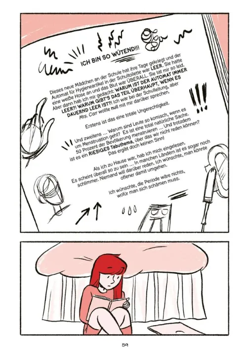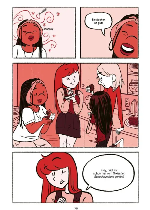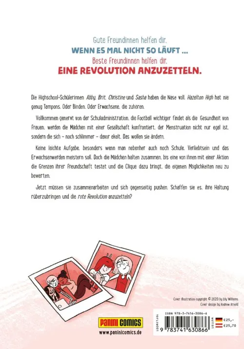 Gute Freundinnen helfen dir, WENN ES MAL NICHT SO LÄUFT . . . Beste Freundinnen helfen dir, EINE REVOLUTION ANZUZETTELN. Die Highschool-Schülerinnen Abby, Brit, Christine und Sasha haben die Nase voll. Hazelton High hat nie genug Tampons. Oder Binden. Oder Erwachsene, die zuhören. Vollkommen genervt von der Schuladministration, die Football wichtiger findet als die Gesundheit von Frauen, werden die Mädchen mit einer Gesellschaft konfrontiert, der Menstruation nicht nur egal ist, sondern die sich – noch schlimmer – davor ekelt. Das wollen sie ändern. Keine leichte Aufgabe, besonders wenn man nebenher auch noch Schule, Verliebtsein und das Erwachsenwerden meistern soll. Doch die Mädchen halten zusammen, bis eine von ihnen mit einer Aktion die Grenzen ihrer Freundschaft testet und die Clique dazu bringt, die eigenen Möglichkeiten neu zu bewerten. Jetzt müssen sie zusammenarbeiten und sich gegenseitig pushen. Schaffen sie es, ihre Haltung rüberzubringen und die rote Revolution anzuzetteln?