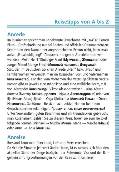 - Hinweise und Betonungsangaben für die richtige Aussprache der russischen Wörter