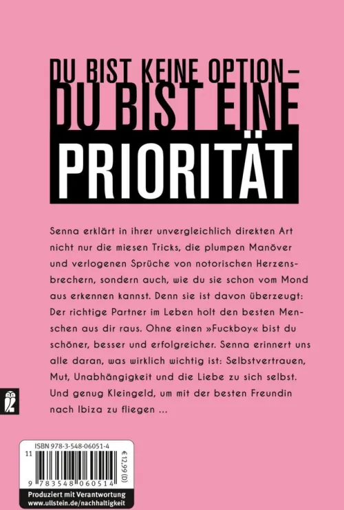 Senna erklärt in ihrer unvergleichlich direkten Art nicht nur die miesen Tricks, die plumpen Manöver und verlogenen Sprüche der notorischen Herzensbrecher, sondern auch, wie du sie schon vom Mond aus erkennen kannst. Denn sie ist davon überzeugt: Der perfekte Partner spielt nicht mit dir, sondern macht den besten Menschen aus dir. Ohne einen „Fuckboy“ bist du schöner, besser und erfolgreicher.