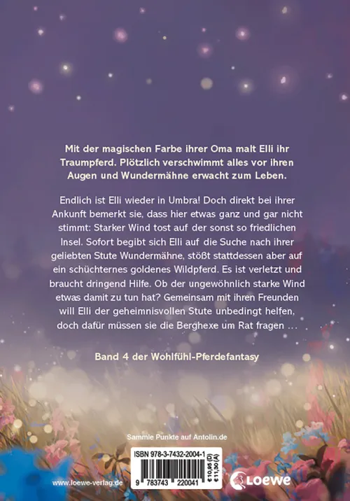 Endlich ist Elli wieder in Umbra! Doch direkt bei ihrer Ankunft bemerkt sie, dass hier etwas ganz und gar nicht stimmt: Starker Wind tost auf der sonst so friedlichen Insel. Sofort begibt sich Elli auf die Suche nach ihrer geliebten Stute Wundermähne, stößt stattdessen aber auf ein schüchternes goldenes Wildpferd. Es ist verletzt und braucht dringend Hilfe. Ob der ungewöhnlich starke Wind etwas damit zu tun hat? Gemeinsam mit ihren Freunden will Elli der geheimnisvollen Stute unbedingt helfen, doch dafür müssen sie die Berghexe um Rat fragen . . .