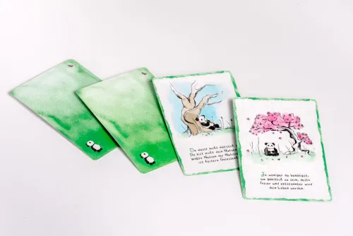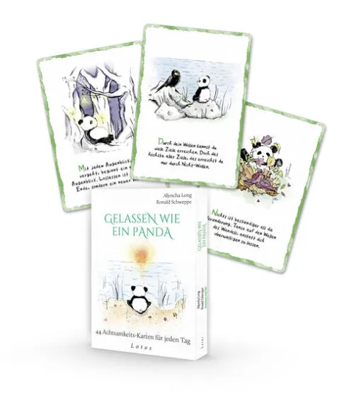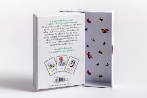 Die inspirierenden Impulse auf jeder Karte erschließen die Essenz fernöstlicher Lebensweisheit und unterstützen uns dabei, zu innerer Ruhe zu finden und Freude, Vertrauen und Selbstliebe in uns zu kultivieren. Ob als Morgenritual, zwischendurch oder wenn wir vor einer besonderen Herausforderung stehen – einfach eine Karte ziehen und Wort und Bild auf sich wirken lassen. So öffnet uns Panda Bao die Augen für die verborgene Schönheit des gegenwärtigen Moments und zeigt, wie wir jeden Tag mit leichtem Herzen und klarem Geist durchs Leben gehen können.