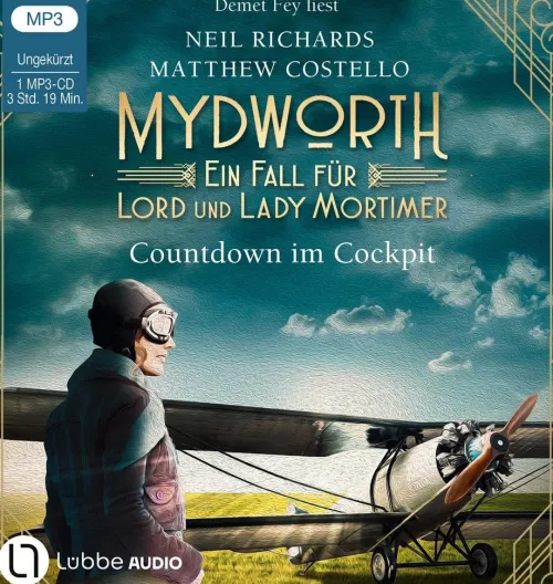 Ein glamouröses Ermittlerduo, ungewöhnliche Verbrechen, schnelle Autos, schicke Kleider und rauchende Revolver – das ist MYDWORTH, die neue Serie von Matthew Costello und Neil Richards, den Autoren der britischen Erfolgsserie CHERRINGHAM. Sir Harry Mortimer, der ehemalige Spion im Dienste Seiner Majestät, ermittelt zusammen mit seiner umwerfenden Ehefrau Kat, die es mit jedem Bösewicht aufnehmen kann! Folge 06: COUNTDOWN IM COCKPITDie weltberühmte Pilotin Amelia Earhart ist zu Besuch in Mydworth und sammelt dort Geld für eine spektakuläre Flugshow, auf der nur weibliche Pilotinnen auftreten sollen. Lady Lavinia ist ein großer Fan der beeindruckenden Fliegerin und auch Kat und Harry sind sehr gespannt auf die Show. Doch es gibt offenbar jemanden, der diesen Auftritt mit allen Mitteln zu sabotieren versucht. Als Amelia nur knapp einem heimtückischen Anschlag auf ihr Leben entgeht, zögern Lord und Lady Mortimer keinen Moment und setzen alles daran, die Pilotin zu schützen. Lesung. Ungekürzte Ausgabe