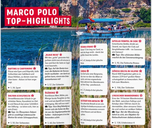 Urlaub zwischen Sandstränden und Steilküsten: Mit dem MARCO POLO Reiseführer an die türkische Südküste Im Vordergrund feiner Sandstrand, antike Tempel und im Hintergrund schneebedeckte Berge: Die türkische Mittelmeerküste sieht nicht nur aus wie das perfekte Postkartenidyll, sie ist es auch! Mit dem MARCO POLO Reiseführer findest du die besten Spots und Unternehmungen zwischen Marmaris und Antakya und stellst dir genau das Reiseprogramm zusammen, auf das du Lust hast.