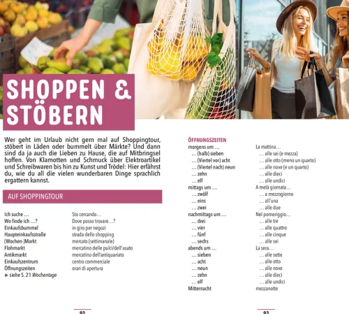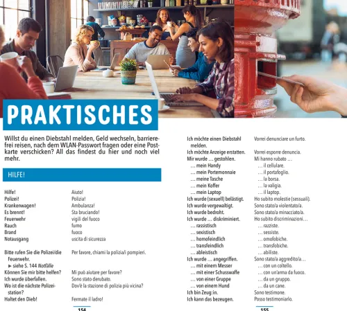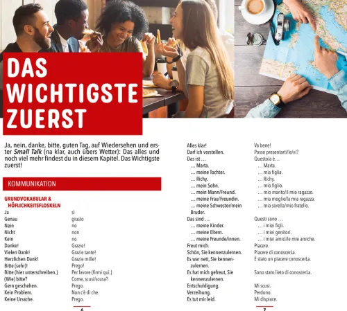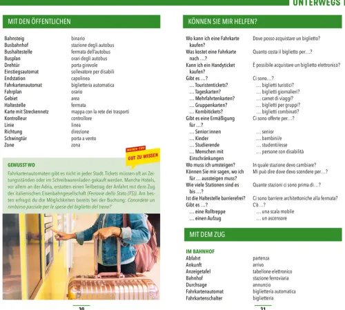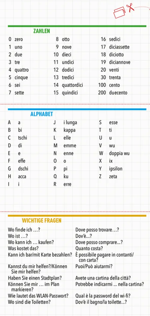 Einfach kurz nach dem Weg fragen? Einen netten Plausch mit Einheimischen führen? Die exotische Speisekarte im Restaurant verstehen? Auch in Notfällen blitzschnell reagieren können? In all diesen Situationen hilft der MARCO POLO Sprachführer Italienisch weiter. Der Sprachführer im Taschenformat ist nach Reisethemen geordnet und gibt dank des einfachen Farbleitsystems schnelle Orientierung. Das Reise-Wörterbuch sorgt dafür, dass du in jeder Situation die richtigen Worte parat hast und mitreden kannst. Für das ganz leichte Gepäck ist der heraustrennbare Spickzettel mit den allerwichtigsten Wendungen perfekt. Und solltest du doch mal sprachlos sein: Da helfen die praktischen Zeigebilder ganz unkompliziert weiter.