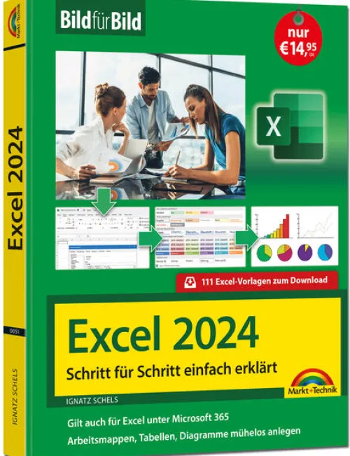 Tauchen Sie Schritt für Schritt in die Welt der Tabellen, Diagramme und Kalkulationen ein. Mit diesem Buch finden Sie den schnellen Einstieg in Excel 2024 bzw. Excel unter Microsoft 365. Die mit vielen Bildern unterlegten Schrittanleitungen erklären anschaulich alle Excel-Grundlagen, die Sie für den Büro-Alltag oder das private Haushaltsbuch brauchen. Sie lernen, wie Excel eingerichtet und bedient wird und wie Sie die KI-Funktionen von Copilot in Excel einsetzen . Sie üben den Umgang mit Zellbereichen und Arbeitsmappen und gehen sicher mit Formeln und Funktionen um. Anhand hilfreicher Praxisbeispiele können Sie Ihre neu erworbenen Kenntnisse zielgerichtet vertiefen. .