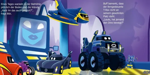 Eine echte Superheldengeschichte zum Vorlesen: Bam und die Batwheels trauen ihren Augen kaum: Der ferngesteuerte T-Rex in der Bathöhle, den Batman einst besiegt hat, erwacht plötzlich zum Leben. Kann Batmans erstes Batmobil Babs helfen herauszufinden, was der Dino vorhat?