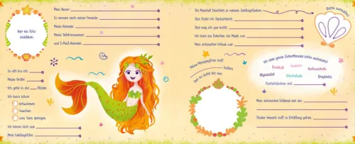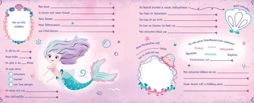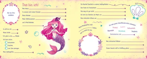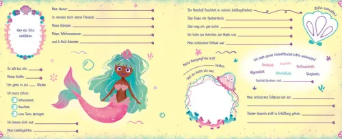 Es erwarten dich bunte Steckbriefe und tolle Mitmachseiten, die jede Menge Platz für kreative Erinnerungen bieten. Neben lustigen Fotos können die Freund*innen auch eintragen, wie sie als Nixe aussehen würden und viele andere witzige Fragen beantworten. Der Geburtstagskalender und die Seite für alle guten Wünsche runden das Freundebuch ab.