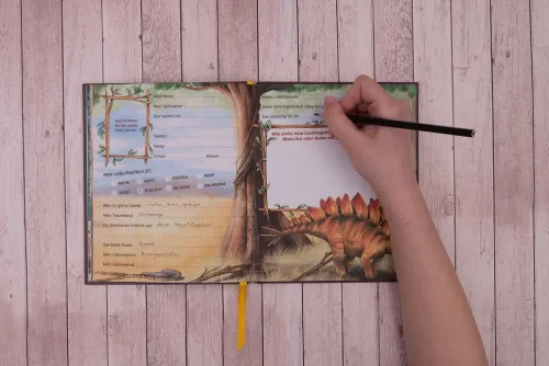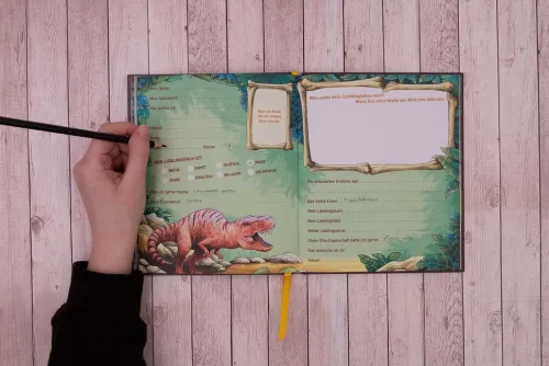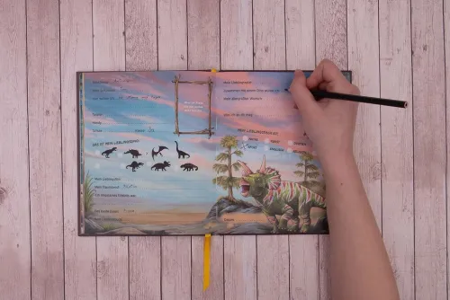 Über dieses Freundebuch freuen sich alle Dino-Fans, denn die Klapp-Wechselcover sind ein echter Hingucker. Auf vielen verschiedenen Seiten können sich Freund*innen aus der Schule eintragen. Außerdem gibt es einen Geburtstagskalender und jede Menge Platz für persönliche Freundschaftssprüche und Fotos. So bleiben Freundinnen und Freunde für immer in Erinnerung!
