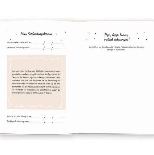 Dieses Buch bietet dir die Gelegenheit, die schönste Zeit in deinem Leben auf besondere Art und Weise festzuhalten. Die Schwangerschaft ist eine aufregende Zeit, in der du viele tolle Momente erleben und neue Erfahrungen machen wirst. Halte Augenblicke von der ersten Schwangerschaftswoche bis zur Geburt in diesem liebevoll gestalteten Tagebuch fest und erfahre mehr über die Entwicklungsschritte deines Babys während der Schwangerschaft. Dabei findest du viel Platz für Erinnerungen, Fotos und Ultraschallbilder. Der Vorsorgeplan bietet dir die Möglichkeit, alle wichtigen Untersuchungen auf einen Blick festzuhalten. Zudem werden dir als kleine Hilfe diverse Checklisten bereitgestellt. Vom Kinderzimmer bis hin zur Erstausstattung und Klinikpackliste mit diesem Buch hast du den perfekten Begleiter für deine Schwangerschaft. Wenn du dein kleines Wunder in den Händen hältst, kannst du all die glücklichen Erinnerungen von Neuem durchleben. Eine Zeit, so wertvoll ist wie das Leben selbst.