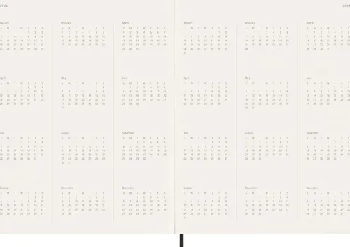 Dieser schlanke und elegante Planer im unverwechselbaren Moleskine-Design hat einen flexiblen und dennoch robusten Einband. Im Inneren ist jede Woche auf zwei Seiten dargestellt. Die Wochentage werden vertikal angezeigt, mit stü ndlichen Feldern fü r Ihre Termine von 7 bis 20 Uhr, auß er Samstag und Sonntag, die ohne Zeitangabe sind. Jede Woche enthä lt auß erdem einen kleinen 3-Monats-Kalender, um Ihrer Planung eine gewisse Perspektive zu geben.