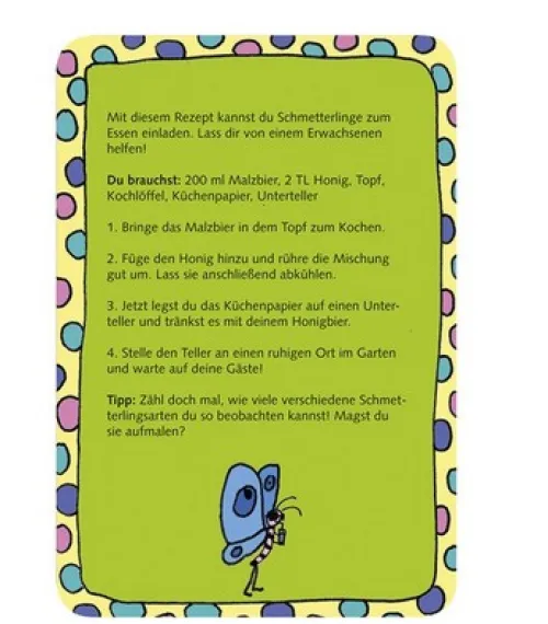 Eine Schmetterlings-Kita eröffnen, einen eigenen Regenbogen herstellenoder ein Unterwasserbeobachtungsgerät bauen – Garten, Park und Waldsind voller Geheimnisse. Dieses Kartenset geht einigen von ihnen aufden Grund.