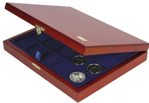 1 Tableau für 20 Münzen bis 41 mm Durchmesser Mit 3 blauen Samteinlagen für verschiedene Münzen