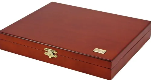 Jede Kassette enthält 3 herausnehmbare Tableaus, mit Patentbügel zum Entnehmen der Tableaus. Im Deckel befindet sich ein wattiertes Kissen.