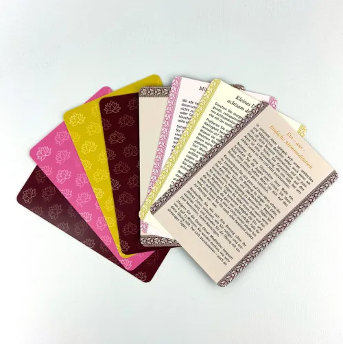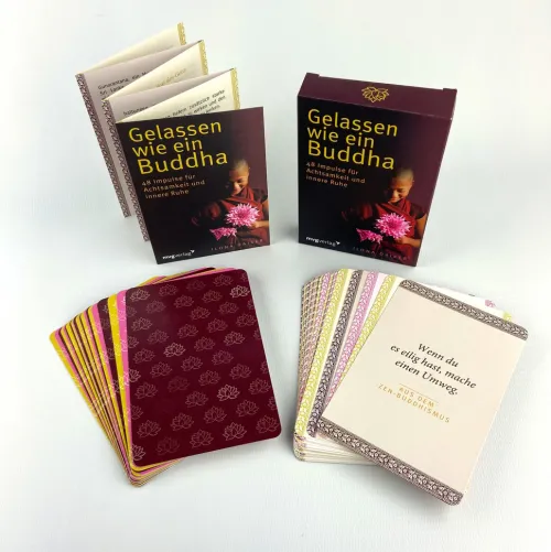 Buddhistische Meditationen und Achtsamkeitsübungen führen einen zurück zum energetischen Gleichgewicht und ermöglichen ein Ventil für Stress, Unzufriedenheit und Ruhelosigkeit. Die 48 Karten in diesem besonderen Deck liefern Ihnen Impulse für jeden Tag, damit Sie lernen, Ihre innere Ruhe zu manifestieren und sich gelassen und bewusst mit dem eigenen Handeln und Erleben auseinanderzusetzen. Die Mischung aus Denkanstößen und konkreten Übungen ist die ideale Grundlage für Einsteiger und Fortgeschrittene des Buddhismus und alle, die nach einem achtsamen Umgang mit sich selbst streben.