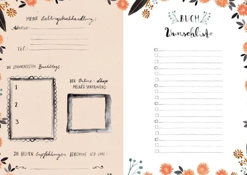 - Bullet Diary mit Wunschlisten, Verleih-Listen, Schwarzen Listen der abgebrochenen Bücher, Listen für schöne Wörter, letzte Sätze und vielem mehr.