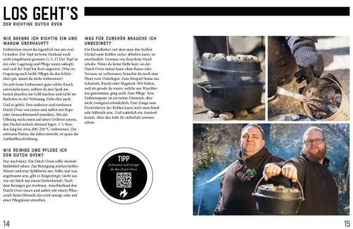 Der Dutch Oven ist eines der Lieblingsbabys der Sauerländer BBCrew. Denn mit dem vielseitigen gusseisernen Topf kann man fast alles zubereiten: saftige Rouladen, zartes Pulled Pork, krossen Schweinekrustenbraten und sahniges Kartoffelgratin genauso wie süßen Apfelkuchen oder knuspriges Brot. Für ihr erstes Buch haben die Sauerländer über 60 Rezepte zusammengestellt. Für alle die noch mehr erfahren wollen: Tipps, Tricks und Infos zu Kauf und Verwendung des Kochgeräts gibt es reichlich.
