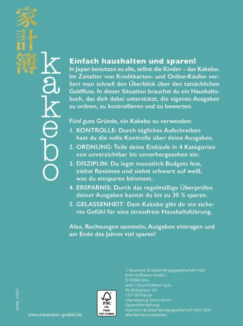 In dieser Situation brauchen Sie ein Haushaltsbuch, das Sie dabei unterstützt, die eigenen Ausgaben zu ordnen, zu kontrollieren und zu bewerten. Es gibt fünf gute Gründe, ein Kakebo zu verwenden: ·