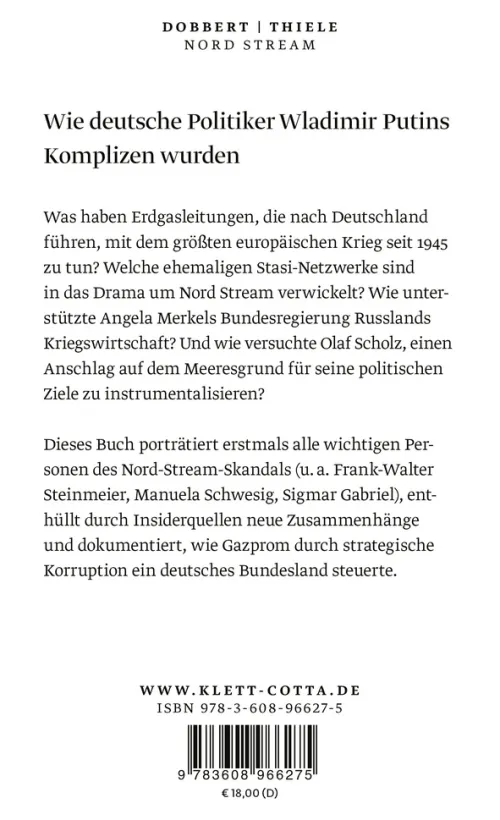 Jahrelang kämpft die Landesregierung in Mecklenburg-Vorpommern für den Bau der russischen Ostsee-Pipeline und stellt sich in den Dienst Putins. Ungestört baut Gazprom in Deutschland ein korruptives Netzwerk auf. Steffen Dobbert und Ulrich Thiele enthüllen besorgniserregende Zusammenhänge: Warum fließen 200 Millionen Euro aus Moskau an die deutsche Ostseeküste? Weshalb gibt eine deutsche Behörde geheime NATO-Daten an Gazprom weiter? Wieso ignoriert die Bundesregierung ukrainische Warnungen vor einer Kriegseskalation? Und sie zeigen, wie dutzende Volksvertreter sich für die Energieaußenpolitik Putins einsetzen, wie ein Ex-Spion der DDR einen folgenschweren Deal mit Gerhard Schröder und Manuela Schwesig verabredet und wie ein geheimes Schiff in der Ostsee an der Fertigstellung der Pipeline arbeitet. Sie entlarven die Strategien, mit denen Putin die EU spaltet, die Ukraine schwächt und Entscheidungsprozesse in Demokratien manipuliert.