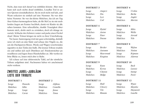 In der internationalen Megaseller-Reihe „Die Tribute von Panem“ (The Hunger Games) schreibt Suzanne Collins über menschliches Verhalten, die dunklen Seiten der Gesellschaft und die Kraft des individuellen Widerstands. Die dystopischen Young Adult Romane spielen in einer postapokalyptischen Welt. Die zentrale Trilogie erzählt die packende Geschichte der jungen Katniss Everdeen, die gegen andere Jugendliche um ihr Überleben kämpfen muss. Alle Bände der spannenden Reihe sind auch als E-Book und Hörbuch und E-Book erhältlich.
