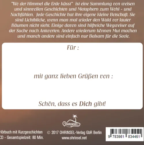 Schreibe die erste Bewertung für „Ohrinsel GbR Romane·Nach Ländern-Wo der Himmel die Erde küsst“ Antworten abbrechen