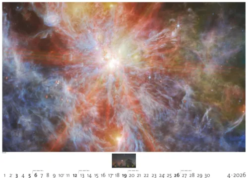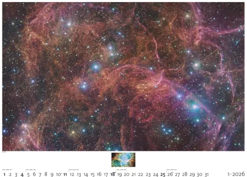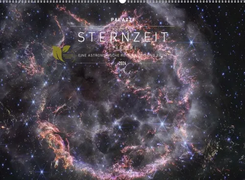 Der Palazzi Sternzeit 2026 entführt Sie auf eine Reise durch Raum und Zeit. Mit spektakulären Himmelsaufnahmen aus den größten Teleskopen der Welt zeigt er die gewaltige Schönheit des Universums farbenprächtig und wissenschaftlich fundiert zugleich.