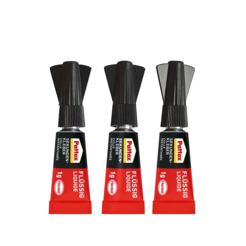 Praktisch portioniert: 3 × 1 g Tuben jede Tube kann praktisch an einem anderen Ort gelagert werden; 3 × immer frischer Sekundenkleber; Fließt auch in kleinste Spalten; Universell einsetzbar; Wasserresistent; Für viele Kunststoffe, Porzellan, Keramik, Metall, Stein, Holz und Pappe; Lösemittelfrei; Praktisch portioniert: 3 × 1 g Tuben jede Tube kann praktisch an einem anderen Ort gelagert werden; 3 × immer frischer Sekundenkleber; Fließt auch in kleinste Spalten; Universell