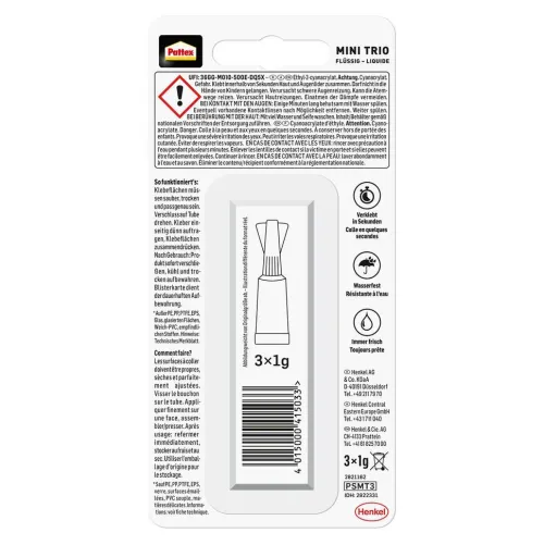 Pattex Kleben Pattex Sekundenkleber Flüssig Mini Trio, 3 × 1 g*Henkel AG & Co. KGaA Clearance