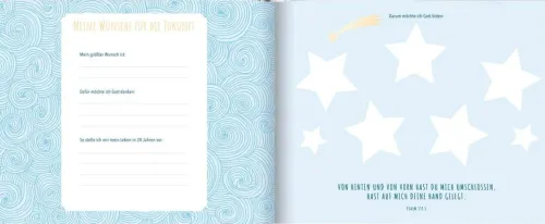 Das liebevoll gestaltete Album bietet viel Platz, um die besonderen Erinnerungen an die Erstkommunion festzuhalten: Fotos, Einladungskarten, kirchliche Festtagsdokumente und andere Erinnerungsstücke können eingeklebt werden.