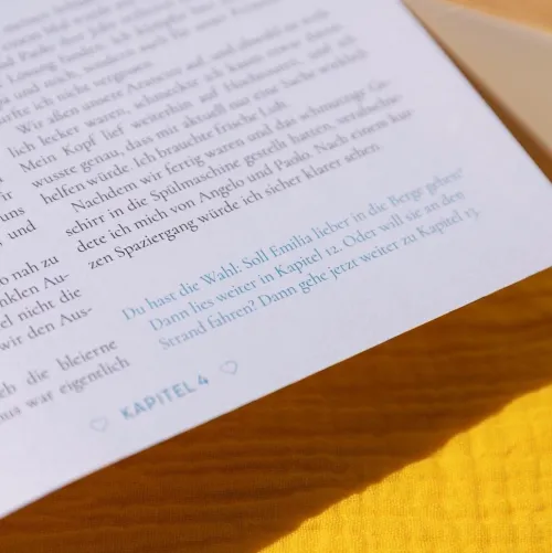 Die Entscheidungsgeschichte ist ideal als Geschenk für die Partnerin, eine liebe Freundin, die Tochter oder auch dich selbst: Für alle, die eine gefühlvolle Sommer-Romance lieben.