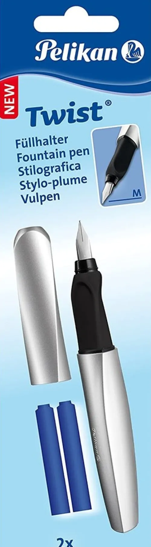 Pelikan Füller & Tinte-Füller Twist, Feder M, Silver, universell für Rechts- und Linkshänder