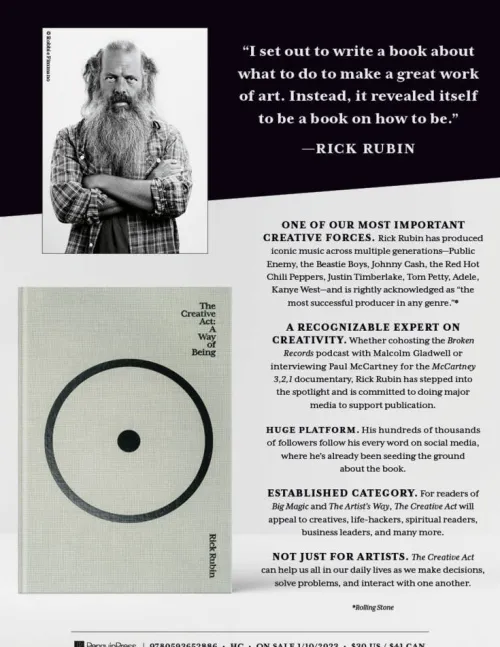 I set out to write a book about what to do to make a great work of art. Instead, it revealed itself to be a book on how to be. Rick Rubin