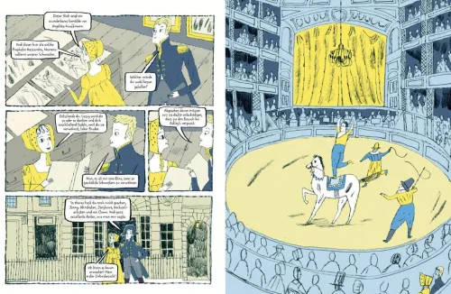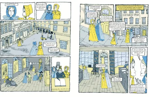 Wir begleiten Jane und ihre Schwester Cassandra, ihre engste Verbündete, durch das England der Regency-Ära mit seinen strikten Vorstellungen davon, was eine Frau tun sollte (heiraten!) und was sie nicht tun sollte (Künstlerin sein!). Wir sind dabei, wenn »Stolz und Vorurteil«, »Emma« und die anderen berühmten Romane Gestalt annehmen und Jane sich nach Zurückweisungen, Zweifeln und Enttäuschungen über ihre erste Veröffentlichung freuen darf. Zahlreiche Zitate aus den Romanen und Anspielungen auf deren Verfilmungen sind in den bezaubernden Bildern versteckt.