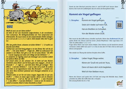 Nach wenigen Minuten kann das erste Lied gespielt werden! Mit vielen lustigen Liedern, Geschichten und Bildern. Für alle, die gerne mit Kindern musizieren wollen. Ohne Notenquälereien!