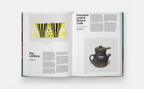 Detailed texts about each designer appear alongside hundreds of images of post-war designs, from furniture to glassware, lighting to textiles, ceramics to tableware, revealing the vibrant cross-pollination of ideas among the designers who defined the era’s aesthetic.