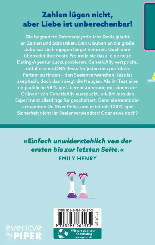 Die begnadete Datenanalystin Jess Davis glaubt an Zahlen und Statistiken. Den Glauben an die große Liebe hat sie längst verloren. Doch dann wird sie von ihrer besten Freundin dazu überredet, eine neue Dating-Agentur auszuprobieren, die wie für Jess gemacht scheint. GeneticAlly behauptet, mit Hilfe eines DNA-Tests für jeden den perfekten Partner zu finden – den Seelenverwandten. Jess steht den Versprechungen von GeneticAlly zunächst skeptisch gegenüber, doch dann siegt die Neugier. Als ihr Test aber eine unglaubliche 98%-ige Übereinstimmung mit einem der Gründer von GeneticAlly ausspuckt, erklärt Jess das Experiment für gescheitert. Denn sie kennt Dr. River Peña, und er ist mit 100%-iger Sicherheit nicht ihr Seelenverwandter! Oder etwa doch?