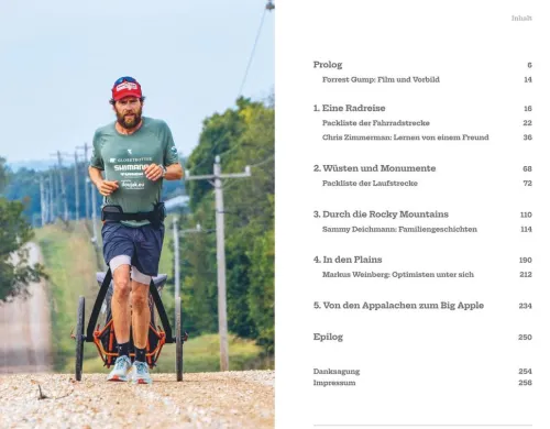 120 Marathons in 100 Tagen: Inspiriert von seinem Filmhelden Forrest Gump läuft Jonas Deichmann quer durch die gesamten USA von Los Angeles bis nach New York. Und damit seine Leidenschaft fürs Radfahren nicht zu kurz kommt, nimmt er das Rad, um zunächst auf der umgekehrten Strecke seinen Startpunkt zu erreichen. „Trans America Twice“ ist die neue große Challenge des Extremsportlers aus Stuttgart, der mit seinem Triathlon um die Welt Abenteuergeschichte geschrieben hat. Was er dabei erlebt? Die unglaubliche Weite des nordamerikanischen Kontinents, extreme Strapazen und Momente größten Glücks. In erster Linie sind es aber die Menschen, denen er begegnet, die er zum Mitlaufen motiviert und die ihm mit ihrer Gastfreundschaft die unterschiedlichsten Perspektiven auf das Land bieten, das das Streben nach Glück in seiner Verfassung verankert hat. Ein inspirierendes Buch voller Abenteuer und ein unwiderstehlicher Ansporn, das Leben in die eigene Hand zu nehmen.