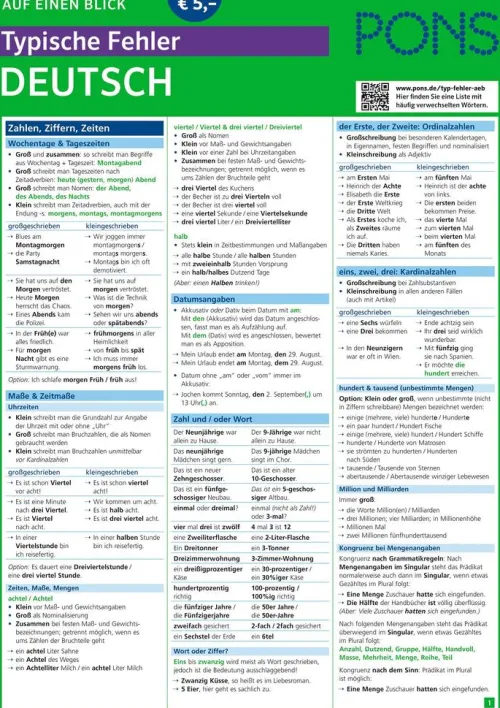 - Alle typischen Fehler und die wichtigsten Ausnahmen, Unregelmäßigkeiten und Zweifelsfälle auf einen Blick zum schnellen Nachschlagen und Lernen.